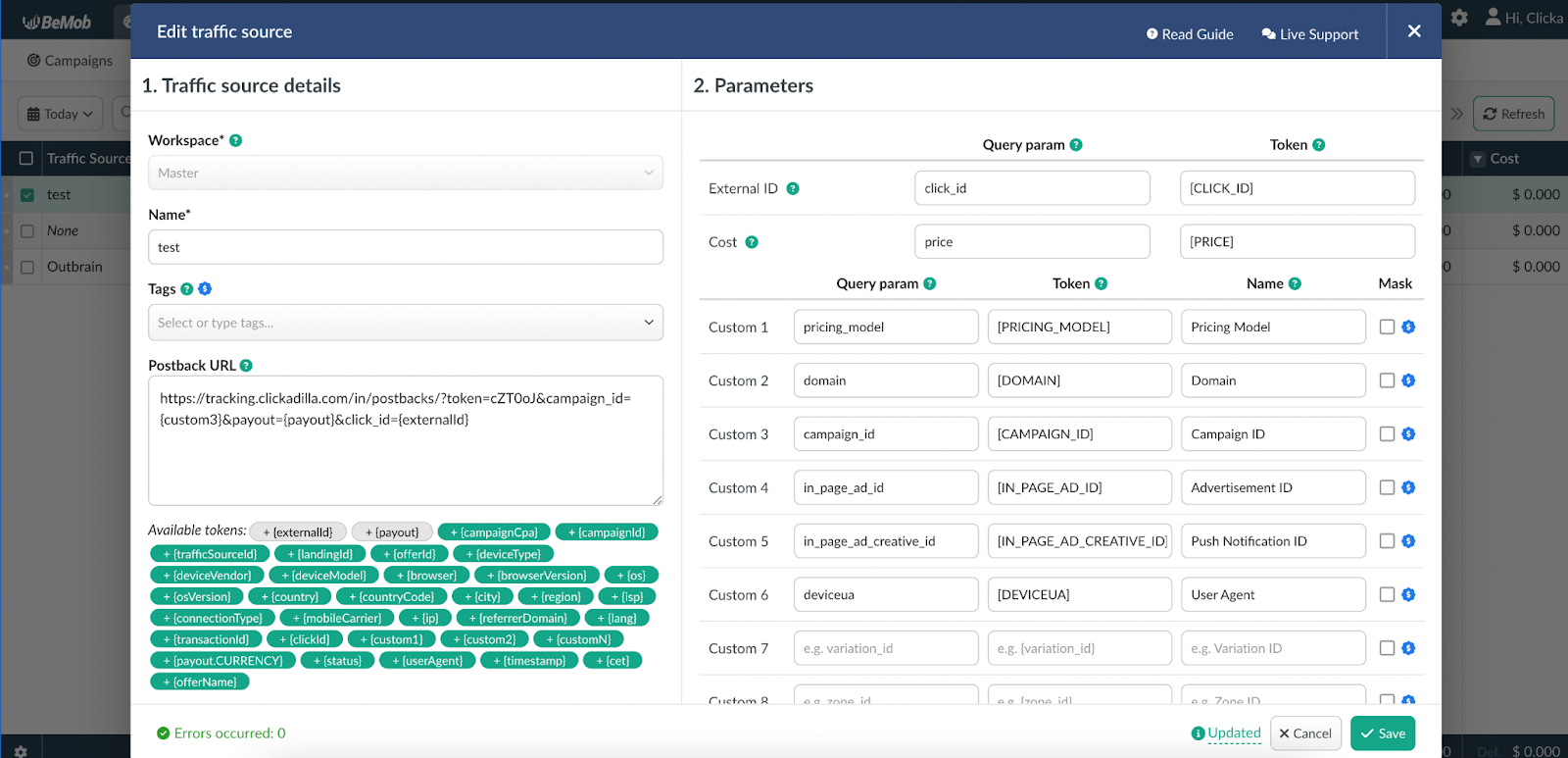 Шаг 1. Как добавить рекламную сеть в список источников трафика на BeMob tracker