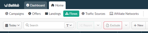 Найдите вкладку “Flows” в верхнем меню трекера, затем нажмите кнопку “Создать”.